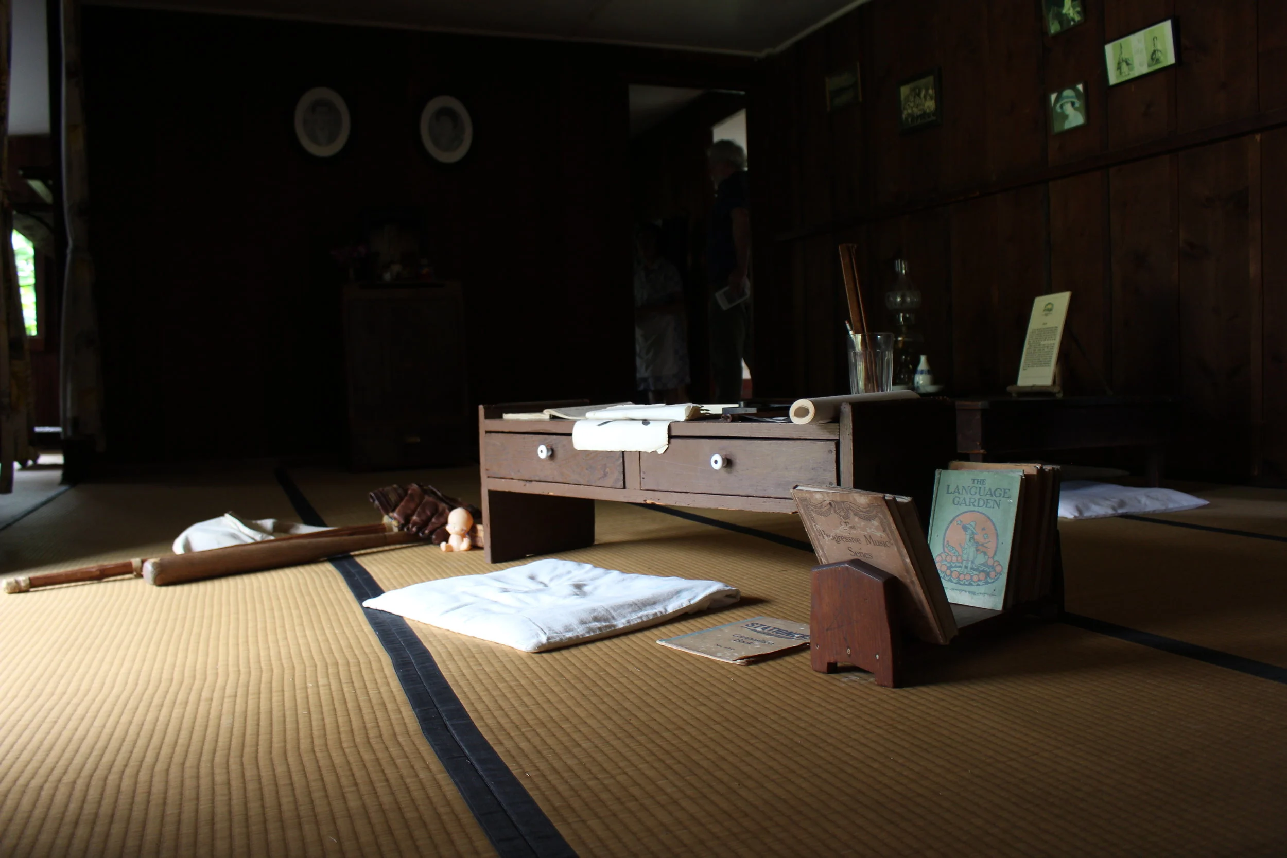 Visitors enter the kitchen where rice simmers on a traditional open-hearth stove before they remove their shoes to walk on tatami mats throughout the house. Outside, they learn to pick coffee and see how it was processed in the kuriba (mill) and dried on the hoshidana (drying platform). Guests can explore the gardens where traditional vegetables are grown, visit the chickens in the chicken coop or say hello to Shizu and Charlie Boy, the Kona Nightingale Donkeys.